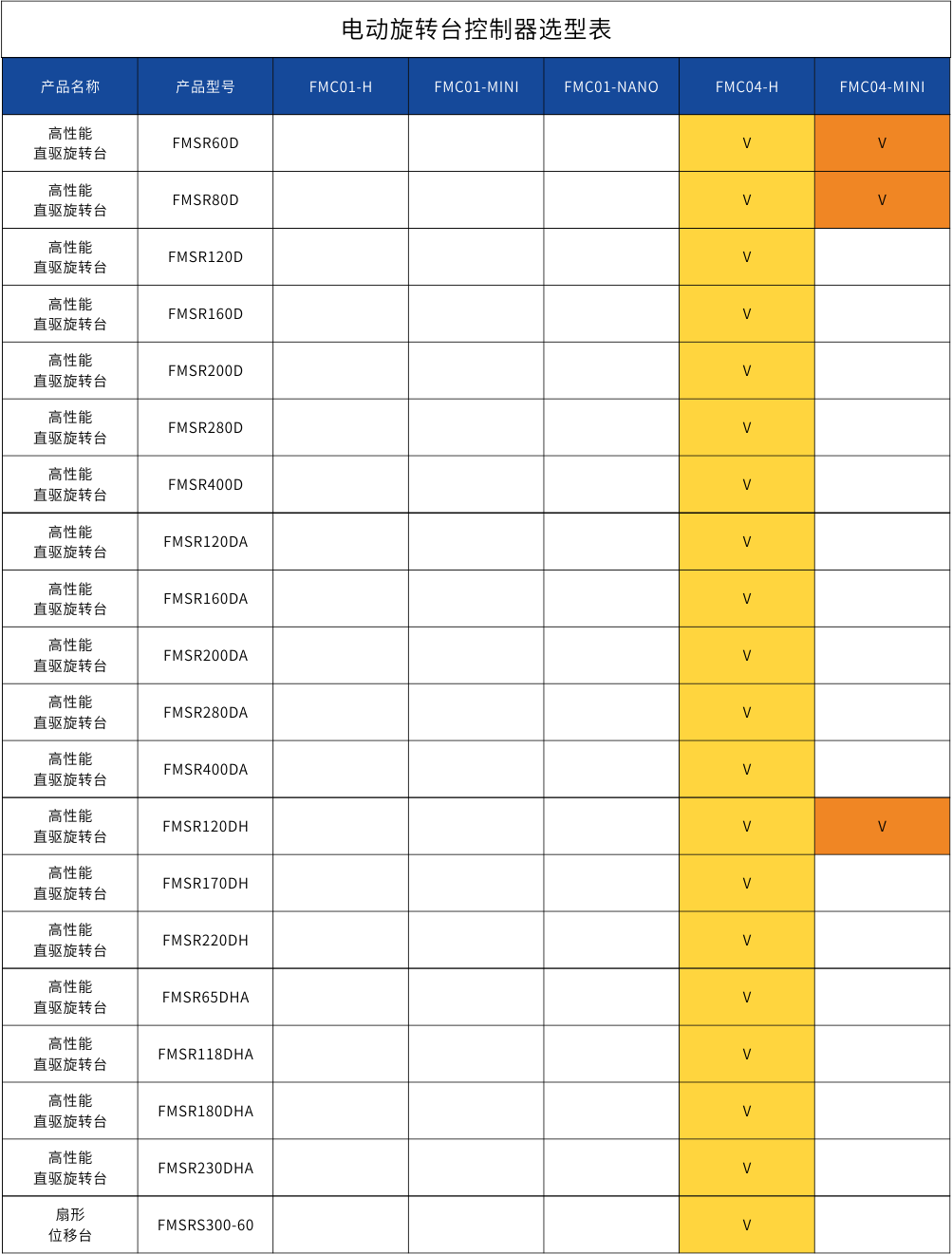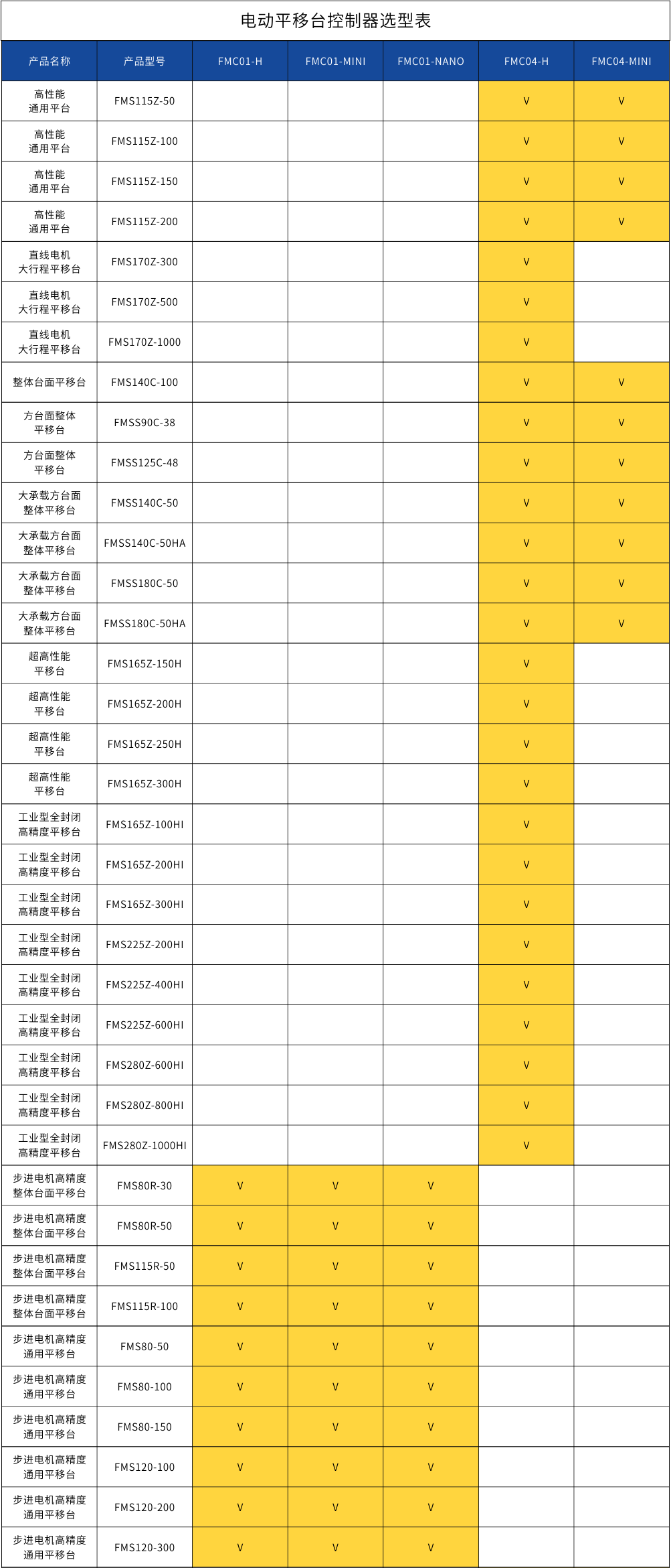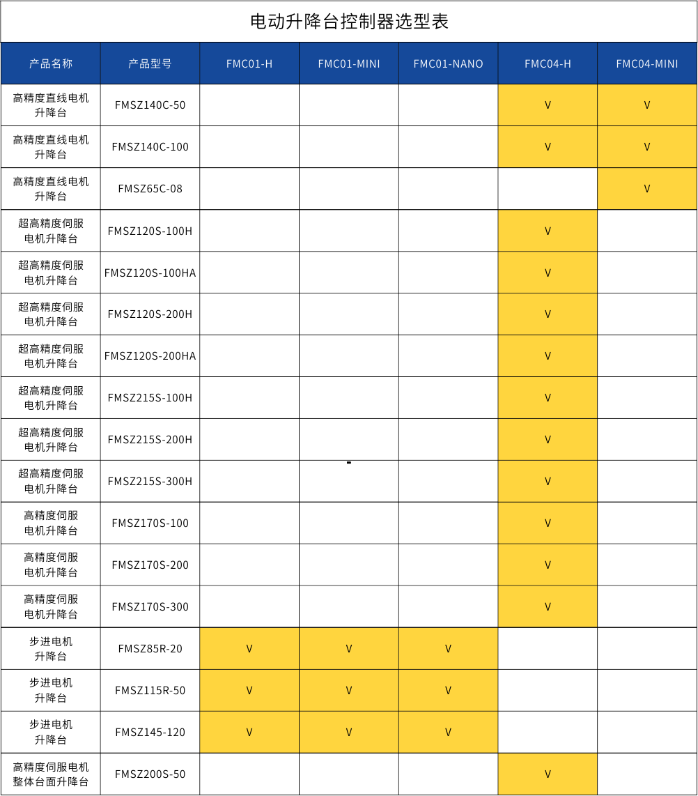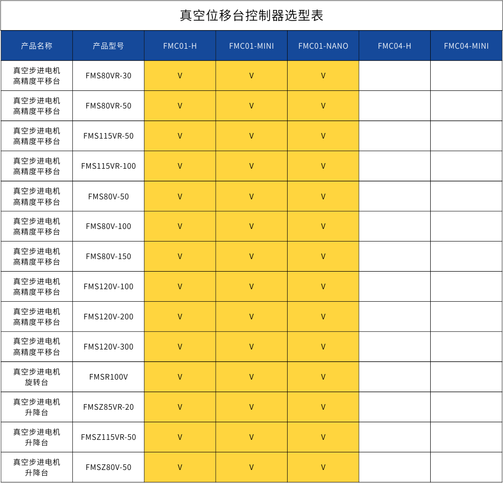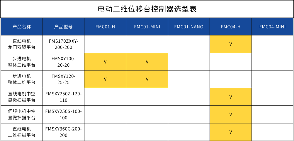 位移台-控制器选型表