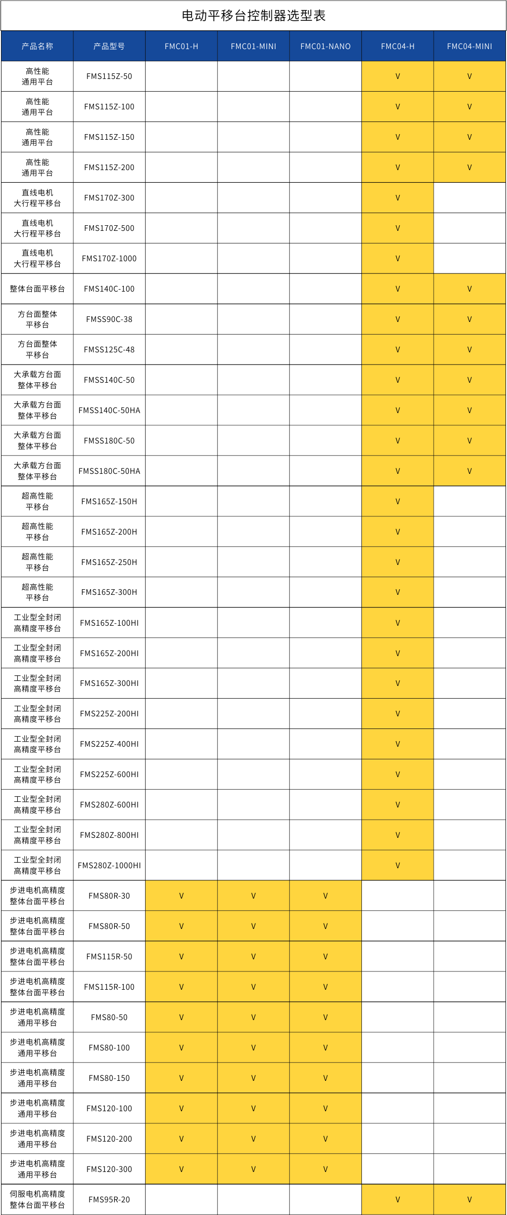 位移台-控制器选型表