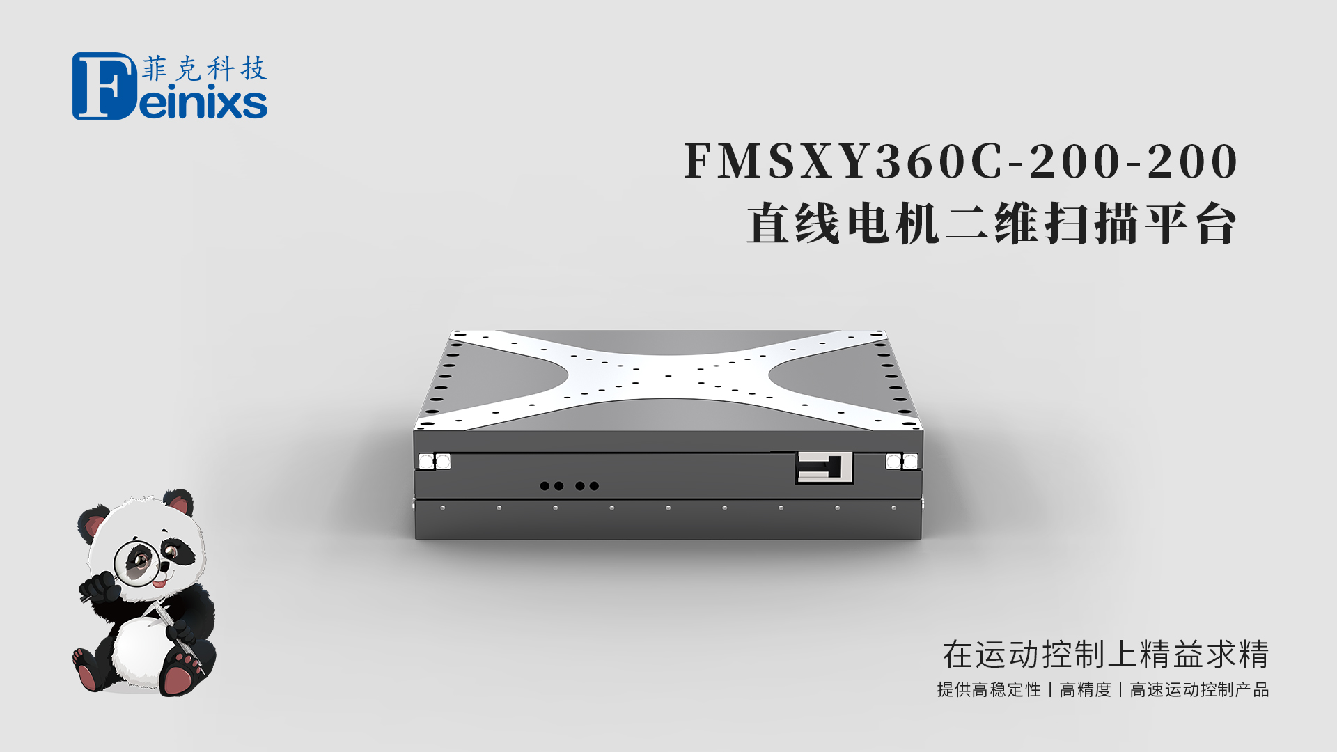 菲克科技 FMSXY360C-200-200 直线电机二维扫描平台,专为需要高精度二维定位的实验室和工业应用而设计。FMSXY360C-200-200 平台采用直线电机驱动,具备高精度、高稳定性、低噪音等特点,一体化设计,易于集成,提供多种行程和配置选择,满足多样化的应用需求。